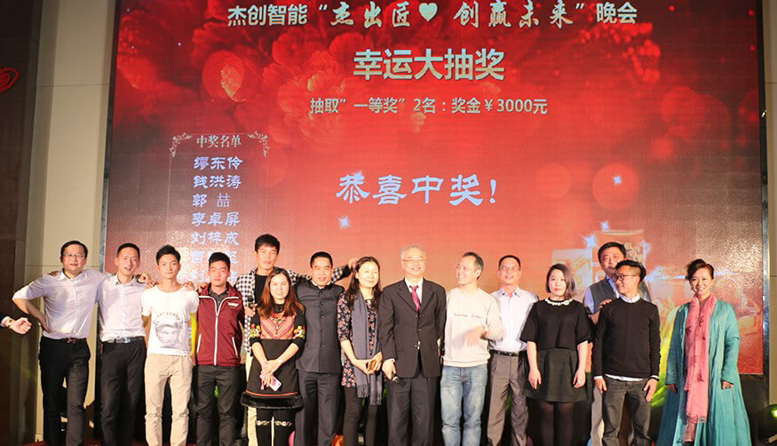 作为整场年会的重头戏,颁奖典礼隆重而喜庆。在阵阵热烈的掌声和欢呼声中,获奖的先进个人和团队一一揭晓,登台领奖。优秀项目经理、优秀工程师、优秀技术员、优秀施工员、优秀实习生、优秀员工、最佳服务之星、最佳长驻明星、最佳外派之星、最佳项目组(大亚湾项目组)、精诚合作奖(深圳团队)、锐意开拓奖(福建团队)、天降雄兵(蓝玛星际),共13组奖项,27位优秀个人,4个先进团队,成为了年会上最闪耀的主角。