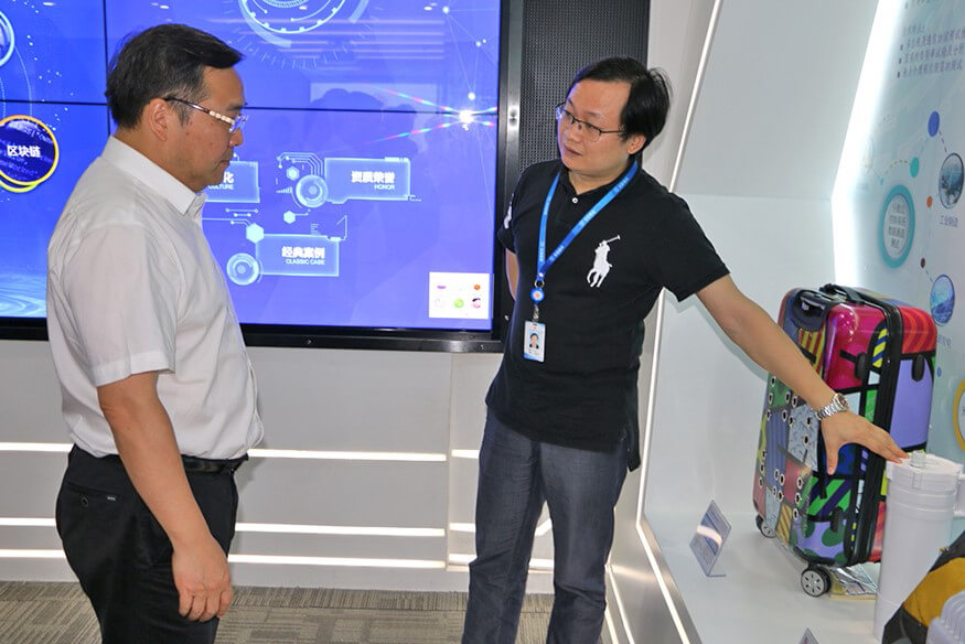 710公海寰宇智能总裁龙飞为陈小华区长介绍公司产品